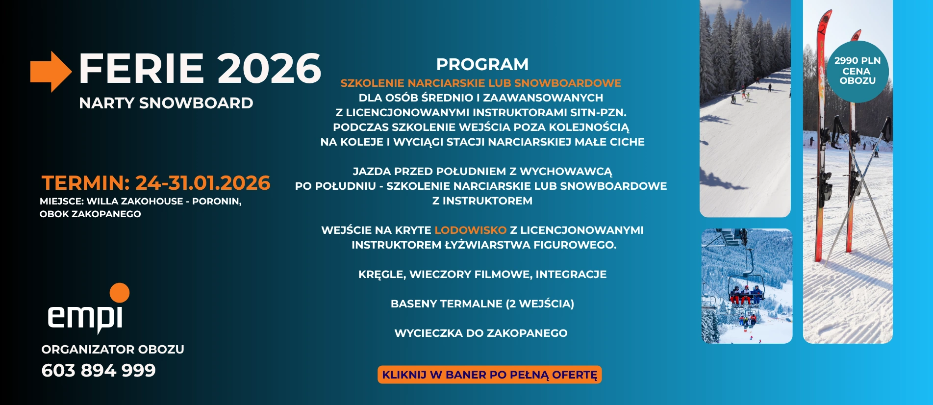 EMPI - FERIE ZIMOWE 2026 NARTY • ŁYŻWY • SNOWBOARD